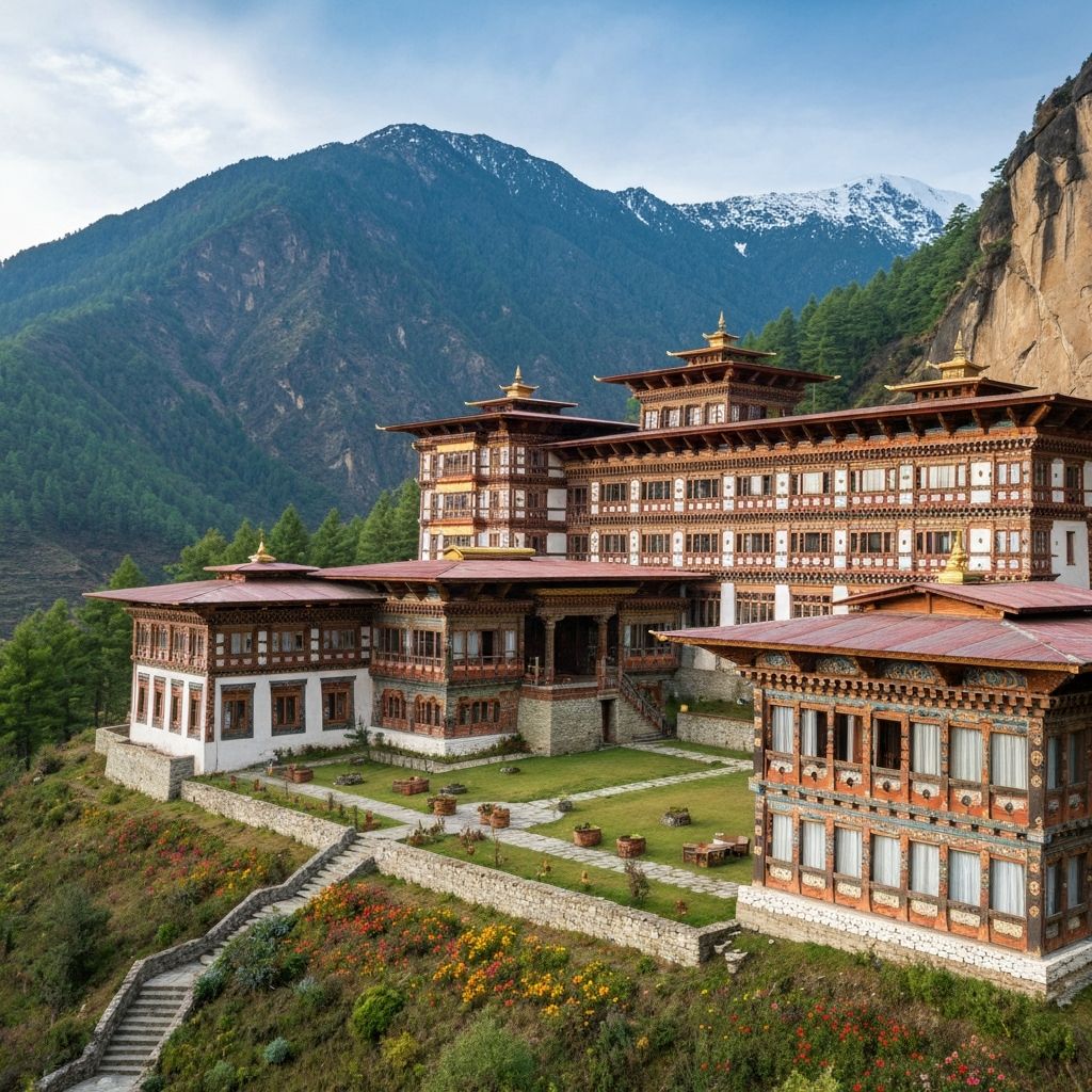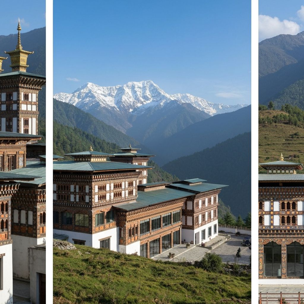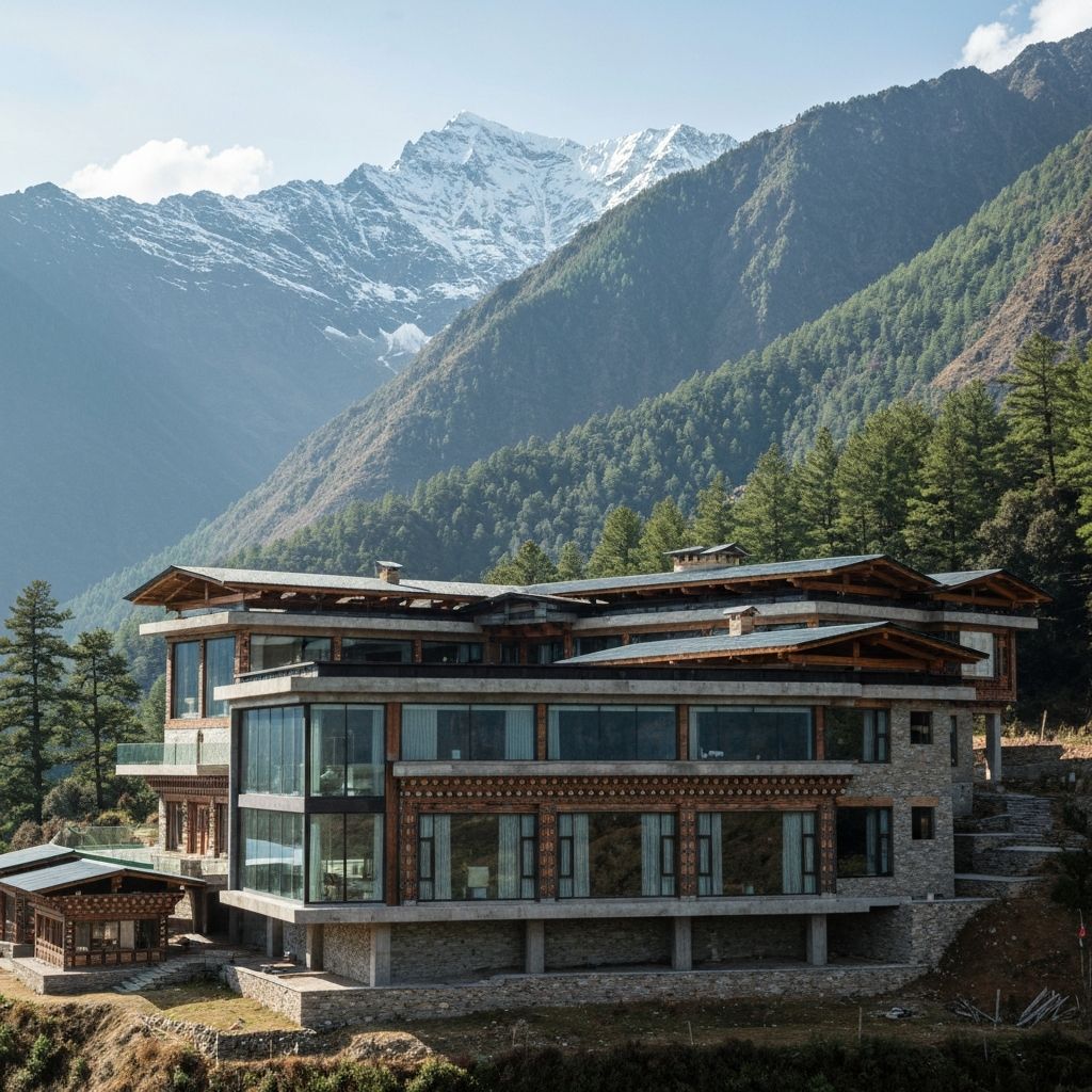 High-quality commercial and residential buildings with modern design and traditional Bhutanese architectural elements.